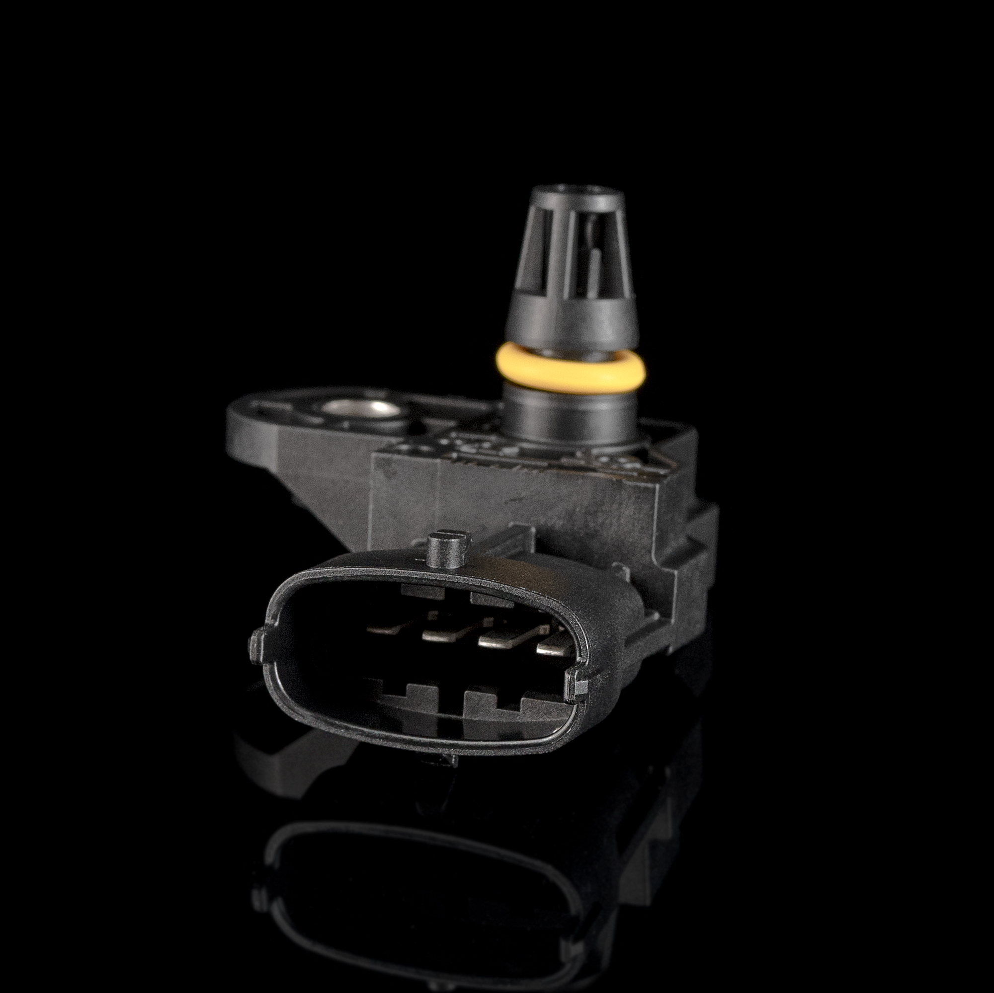 В конструкции датчика давления воздуха присутствует 2 камеры – атмосферная, связанная со впускным коллектором, и вакуумная. Там же расположены 4 тензорезистора, прикрепленных к диафрагме, и электронный чип. Давление воздуха действует на диафрагму, и она перемещает тензорезисторы, которые в зависимости от положения меняют сопротивление, что в итоге влияет на величину импульса от чипа к блоку управления.