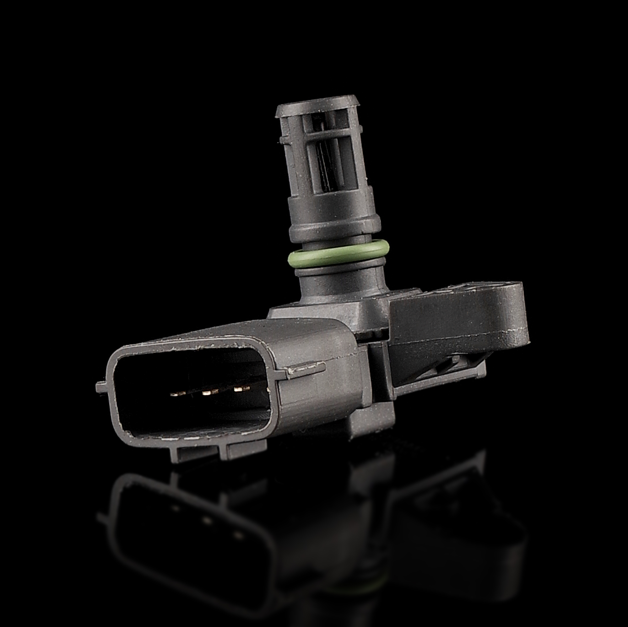 В конструкции датчика давления воздуха присутствует 2 камеры – атмосферная, связанная со впускным коллектором, и вакуумная. Там же расположены 4 тензорезистора, прикрепленных к диафрагме, и электронный чип. Давление воздуха действует на диафрагму, и она перемещает тензорезисторы, которые в зависимости от положения меняют сопротивление, что в итоге влияет на величину импульса от чипа к блоку управления.